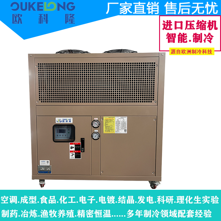 深圳歐科隆制冷自主設計研發生產的15HP風冷式冷水機是一款中高功率工業制冷設備,專為中型生產線和集中冷卻需求設計。該機型采用高效風冷散熱技術,免除冷卻塔配置,兼具大冷量輸出與便捷安裝特性,是制造業升級的理想溫控解決方案。
