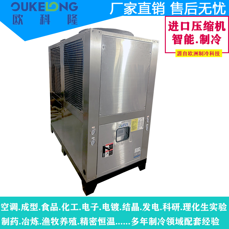 歐科隆25HP風冷式304不銹鋼冷水機是一款工業級高防腐制冷設備,專用于食品醫藥、化工電鍍等腐蝕性環境。整機核心部件采用304不銹鋼材質,兼具大冷量與卓越耐腐蝕性能。