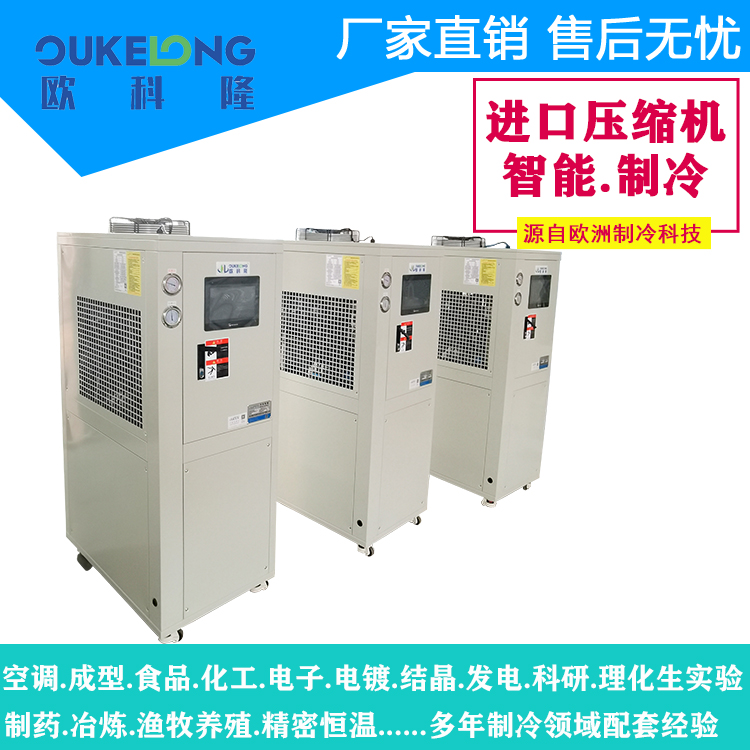歐科隆芯片研發封裝冷水機專為半導體制造、IC封裝及高精度芯片測試設計,提供±0.1℃超精密溫控,確保晶圓加工、光刻機冷卻、封裝測試等關鍵環節的穩定性,助力提升芯片良率與生產效率。